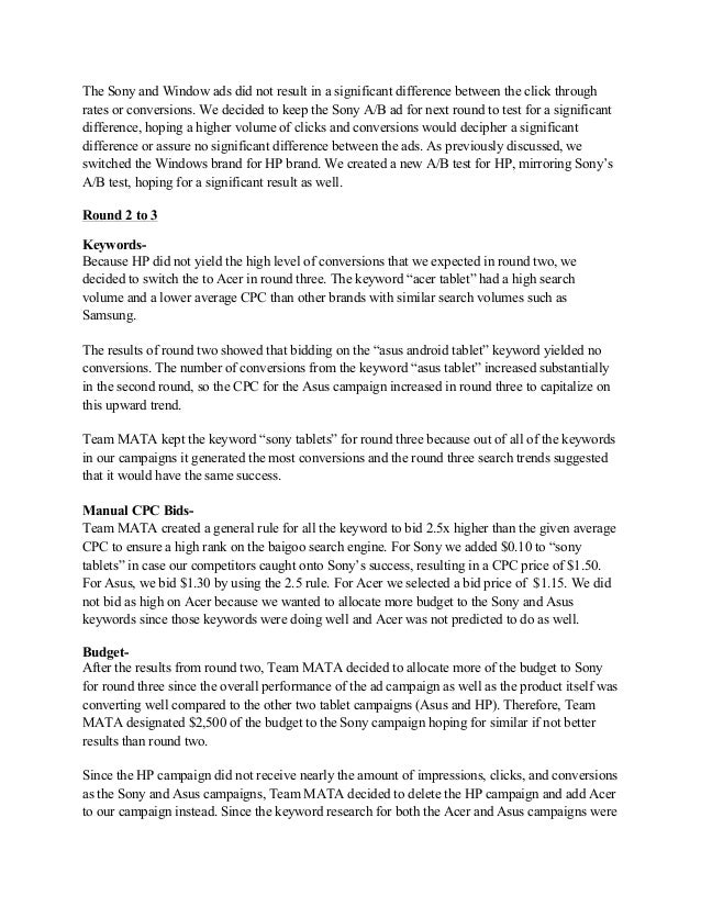 An Nguyen Dr. John P. Eaton MKT 300 6th December 2014 Marketing Simulation Analysis Paper Marketplace Business Simulator is an on-line marketing simulation that incorporates all the marketing principles I have learned over the course of this semester and apply them into real world marketing practice.